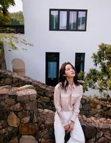 环境成为这组作品中不可或缺的“共演者”。斑驳的木门、素雅的砖墙、郁郁葱葱的庭院绿植,这些充满岁月感和生命力的元素,与欧阳娜娜自然的状态相得益彰。摄影师巧妙运用自然光线,让每一帧画面都弥漫着夏秋之交特有的柔和光感与透明空气,共同编织出一个让人心生向往的避世桃源。这种对自然与场景的极致利用,与她此前那些令人印象深刻的外景拍摄一脉相承。